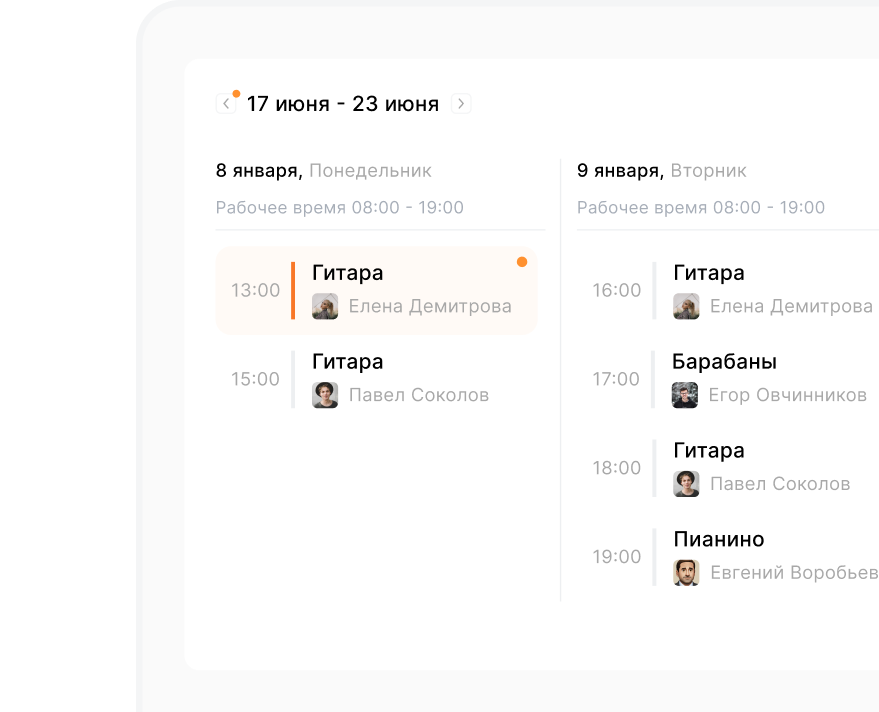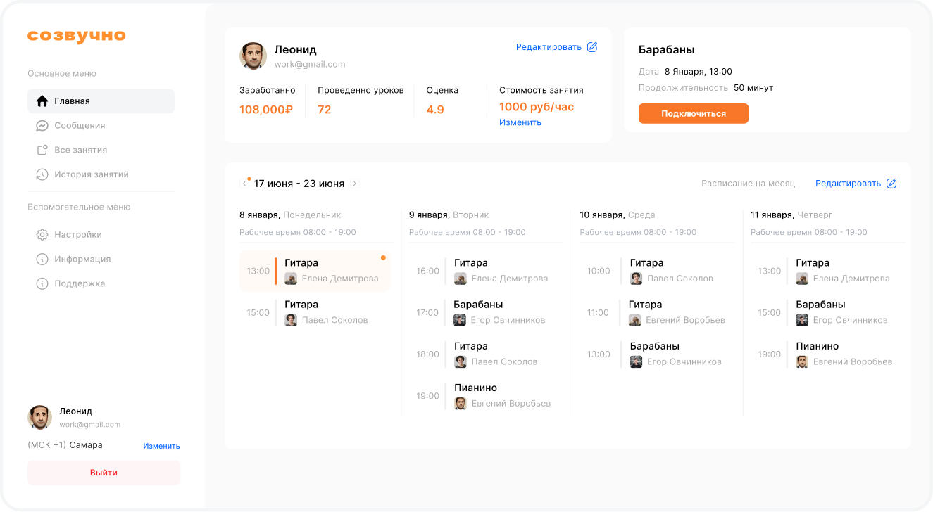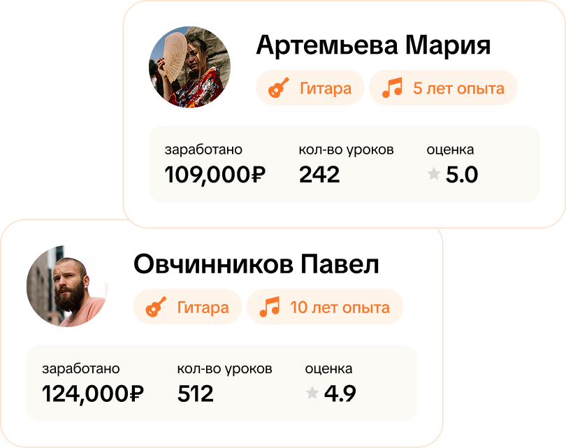 На платформе доступны такие инструменты, как гитара, вокал, барабаны, фортепиано и другие. Перечень зависит от специализаций преподавателей.