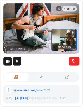 Уроки проводятся в формате видео-конференций. Во время занятия вы можете взаимодействовать с преподавателем, использовать встроенные учебные материалы и выполнять задания.